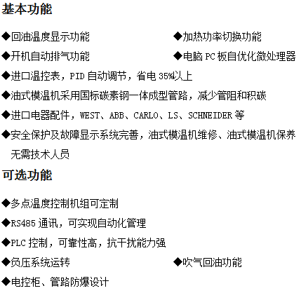 200℃模温机采用德国SIEMENS、CARLO、美国CRYDOM、英国WEST、瑞士ABB、SPECK等欧美进口品牌配件,全系列模温机可实现加热冷却PID调节,自动控温。