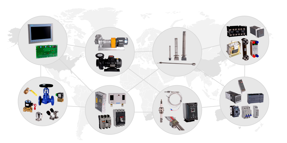 PLC模温机采用电为热源,导热油为热载体,利用循环油泵强制循环,将热能输送到用热设备后,继而返回重新继续加热的设备,如此周而复始,实现热量的连续传递,使被加热物体温度升高,达到加热恒温的工艺要求。当温度高时停止加热,打开冷却电磁阀利用外部冷却水经过换热器对导热油降温在对设备降温,温度低时,启动加热管加热。
